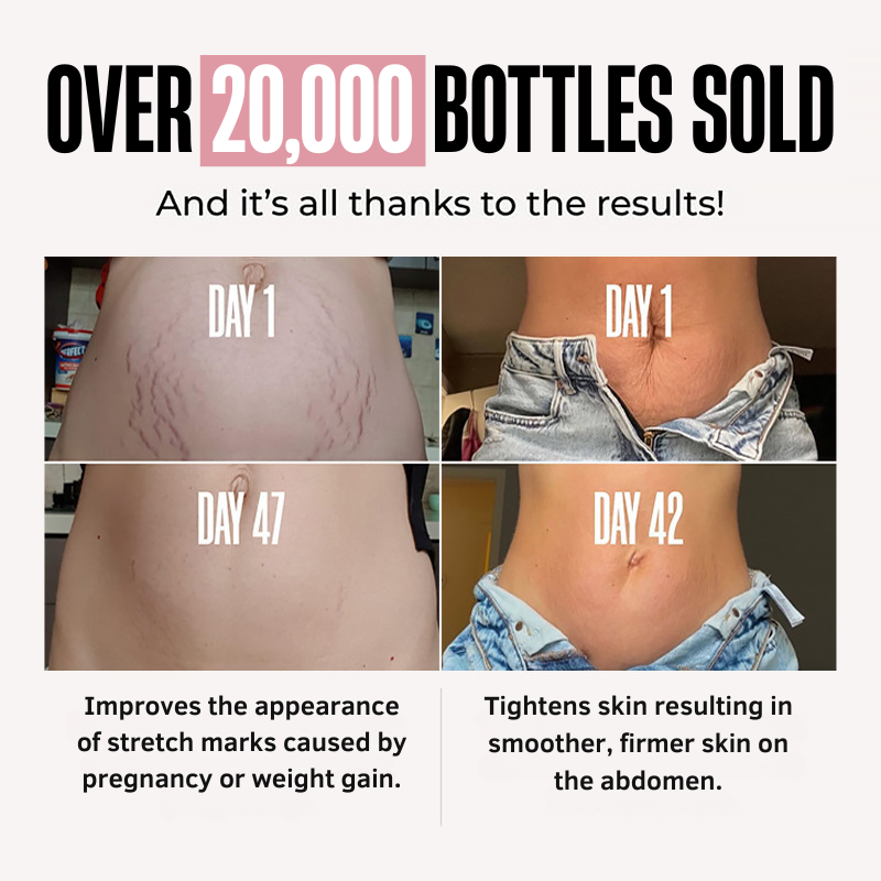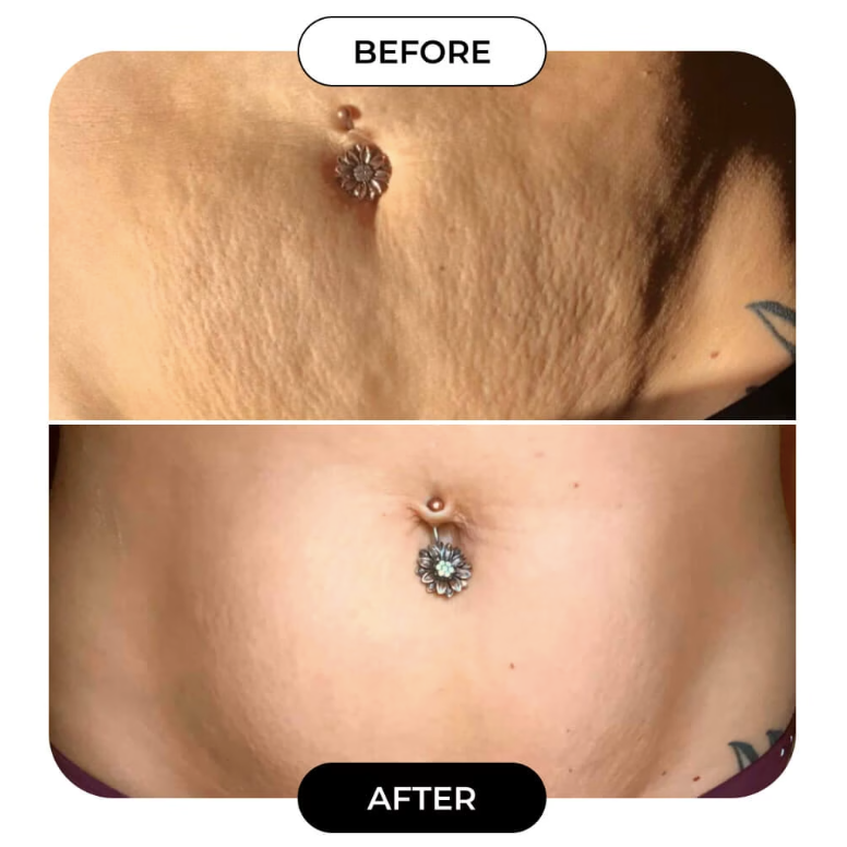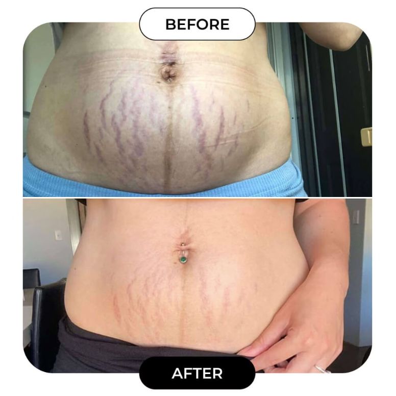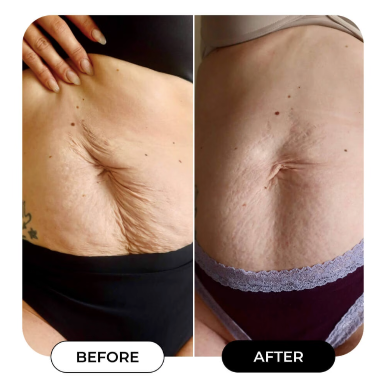 Visible results — like improved tone, smoother skin, and reduced appearance of stretch marks — typically build gradually with daily application.