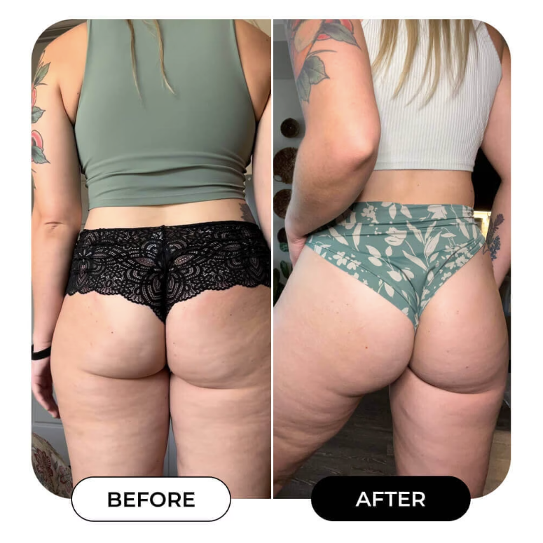 Every body is different, but many customers report noticing a difference in skin texture and firmness within the first few weeks of consistent use. The warming sensation is immediate — a sign the formula is active — but visible results like smoother thighs, reduced dimpling, and improved tone typically build with daily application.